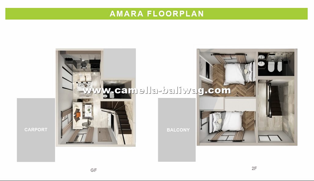 Amara has a lot area of 88 and a house area of 52 sqm (or 72 sqm with balcony option). It's a single attached 2-storey house with two bedrooms, two toilets and baths, a living area, dining area, kitchen, a carport, provision for a balcony, and a laundry and service area. The grand master's bedroom is located at the second floor with exclusive toilet and bathroom. If you want the biggest space and all the extra rooms that you can have, Amara model is for you!